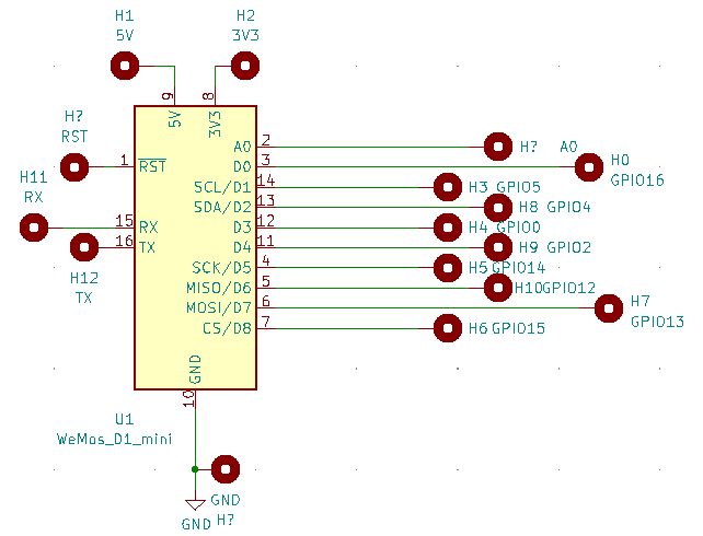 Connexions déportées sur des pads pour tous les GPIO du WEMOS D1 ;