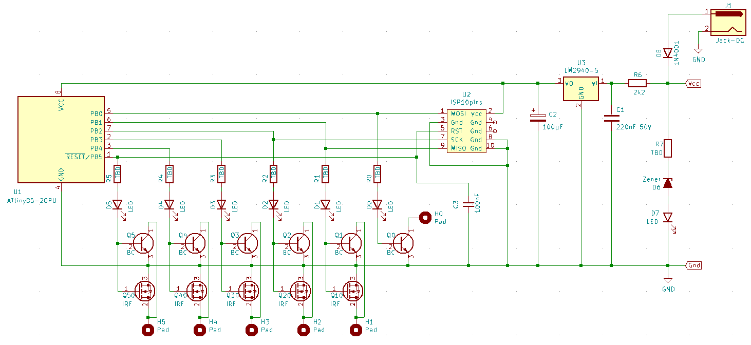 le triptyque R5/D5/Q5 sur la broche PB5 (reset de l'ATtiny)